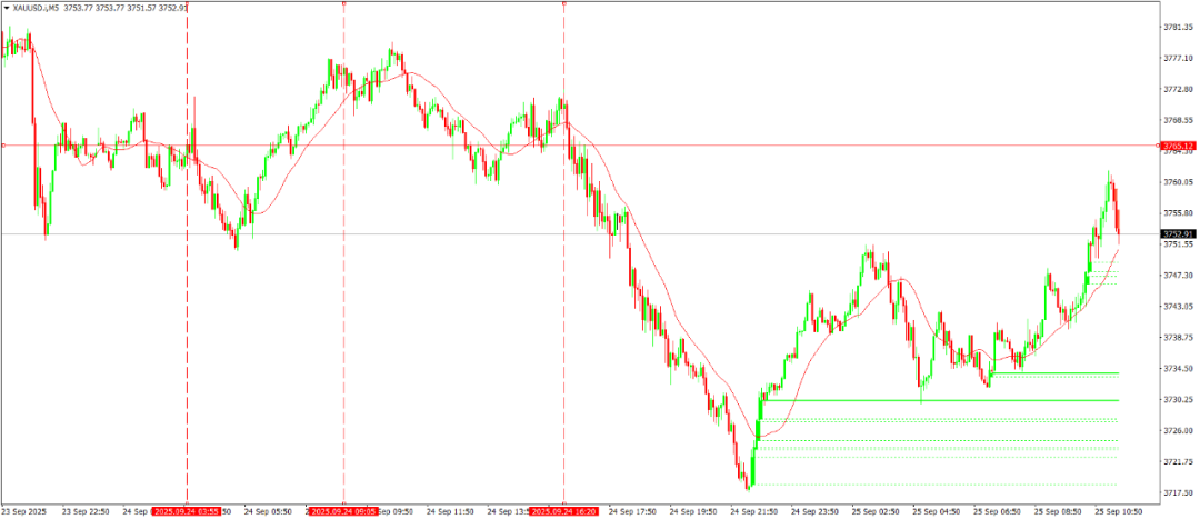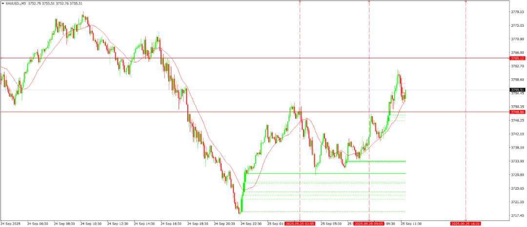 具体操作上看,3760-3765这个大致区域是昨天开盘价附近,也是昨天抛盘开出集中出现的位置,金价反弹到这个位置后可能会短暂回落一段时间。如果晚些时候金价回踩至3741附近,我会观察此处是否出现反转信号,进而做多,止损3美元,目标看至3765附近。