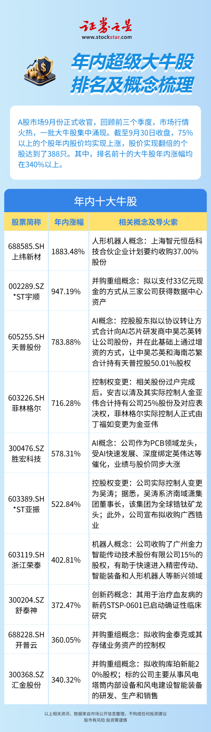 最高暴涨1800%!年内十大牛股出炉(名单)