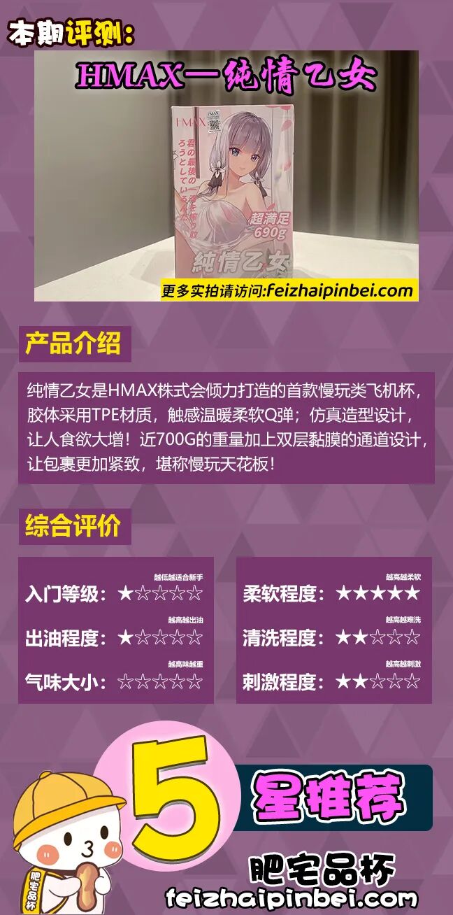 HMAX——“纯情乙女”评测!紧致包裹,慢玩天花板! 作者: 肥宅品杯 声明:本文仅为产品使用指南与人物资讯,不含任何色情内容,不提供任何观看方式,不涉及非法信息。如若本站内容侵犯了原著者的合法权益,可联系我们进行处理。