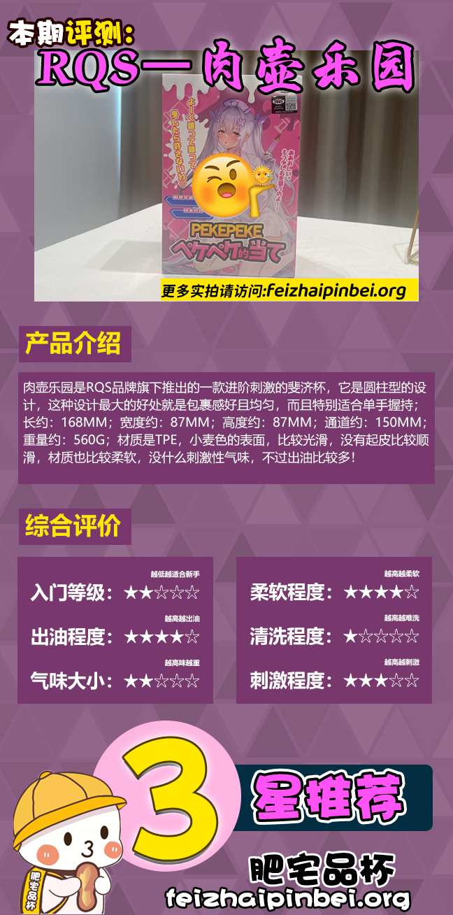 RQS——“肉壶乐园”评测!方便手持的设计,却弥补不了小克重的缺陷! 完整评测请复制到浏览器观看! https://feizhaipinbei.org/ 如果收藏的网址无法打开 请重新复制上方网址到夸克浏览器哦! 作者: 肥宅品杯 声明:本文仅为产品使用指南与人物资讯,不含任何色情内容,不提供任何观看方式,不涉及非法信息。如若本站内容侵犯了原著者的合法权益,可联系我们进行处理。