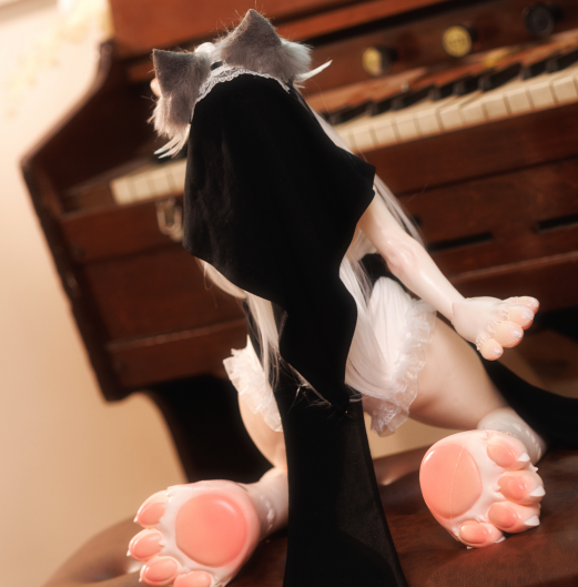 黑白禁欲系修女袍(扣到喉咙!),却伸出一对粉嫩猫爪肉球!