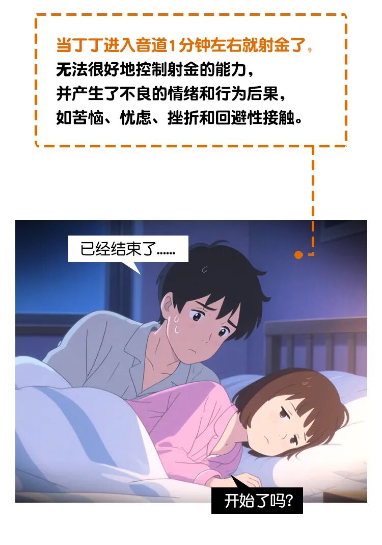继发性枣泄:之前都很正常突然出现了枣泄,射精时间通常时间<3分钟。