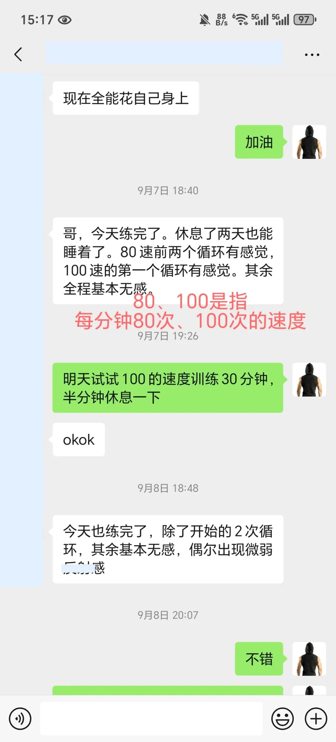 25 年 9 月 8 号,最后一次训练反馈,飞机杯 30 分钟无压力,速度一分钟 100 次,速度挺快。ps:针对时间短,提供系统的、有针对性的延时指导服务,欢迎咨询。