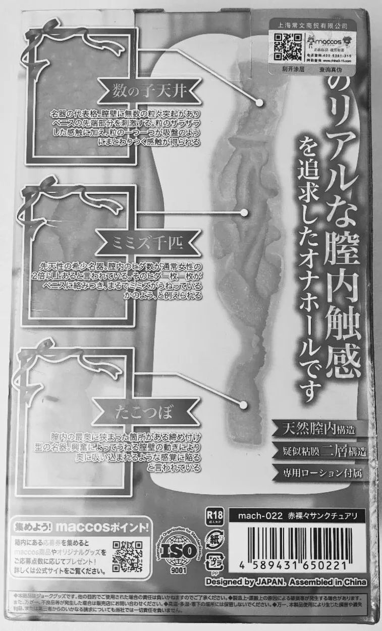 其他面是角色立绘差分和通道介绍,貌似采用了仿生粘膜的通道设计,感觉搭配加热使用会很不错。产品标签贴在了盒子底部,不影响其他面的展示和整体美观性,这个不错。