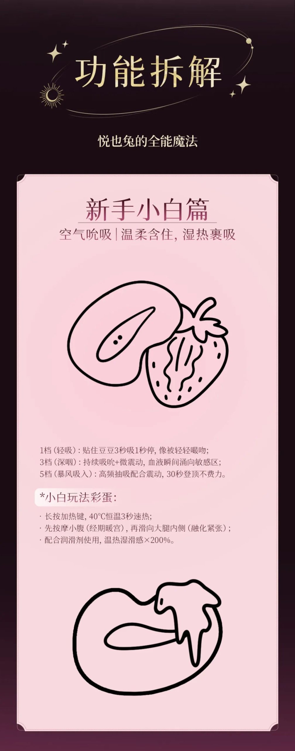 如何玩转悦也兔? 点击下方链接 把悦也兔带回家 作者: 杰士邦秘密花园 声明:本文仅为产品使用指南与人物资讯,不含任何色情内容,不提供任何观看方式,不涉及非法信息。如若本站内容侵犯了原著者的合法权益,可联系我们进行处理。