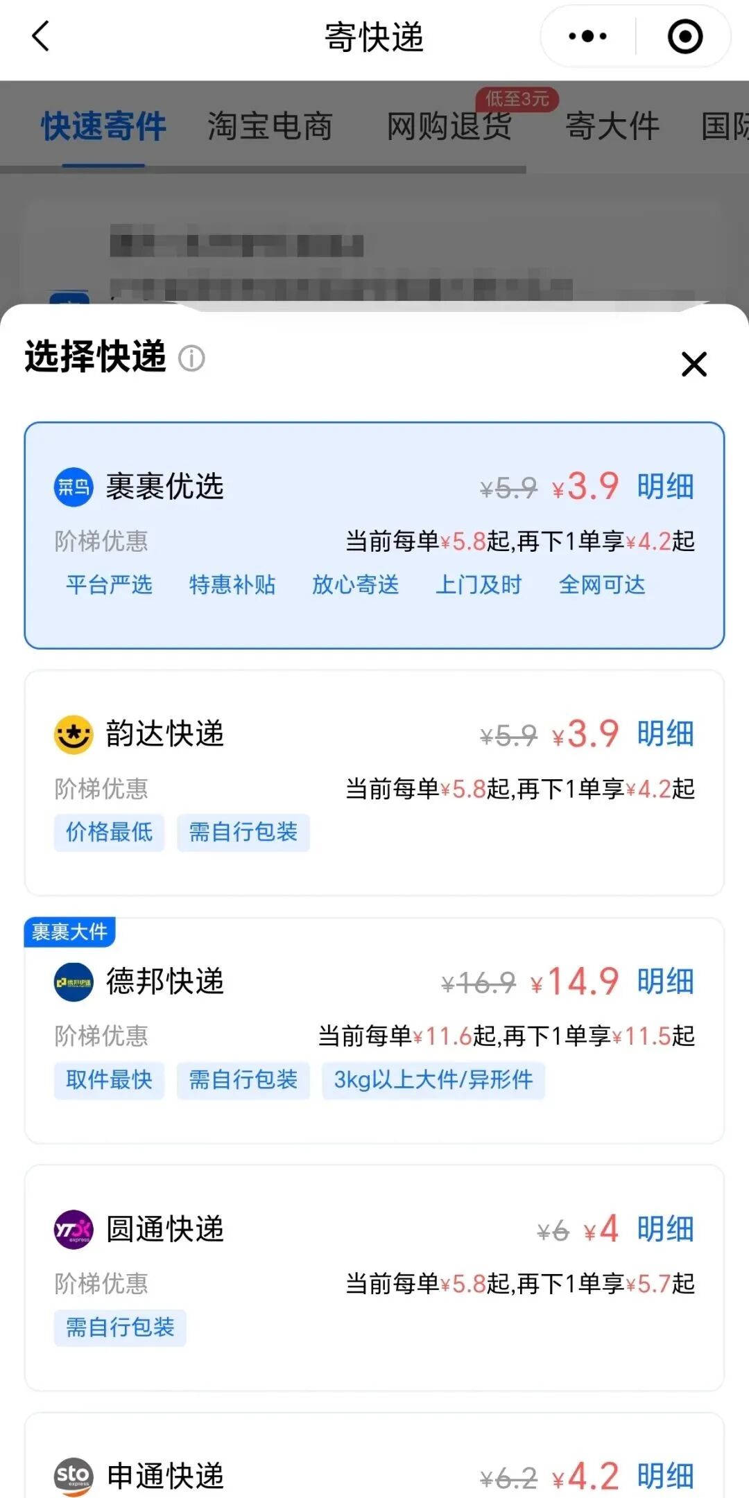 如果附近有类似丰巢的快递柜,可以用快递柜寄件,小程序上可以下单,柜机地址可以通过底部tab栏“附近柜机”查看。