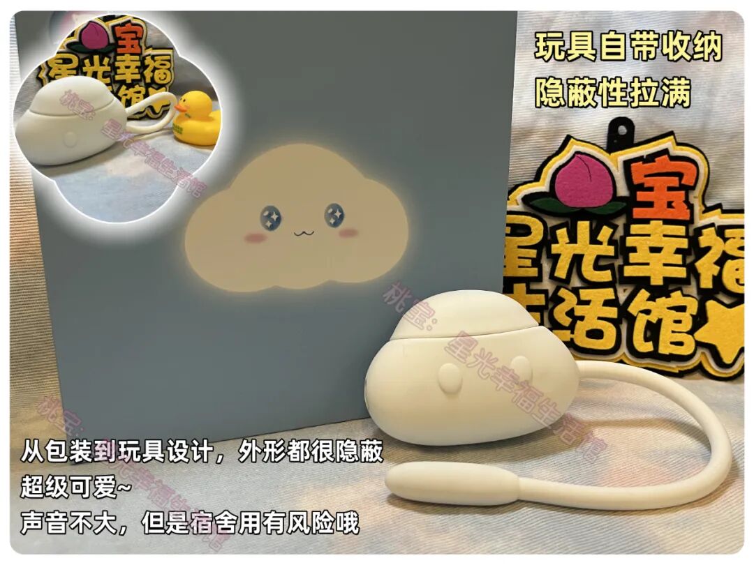 吮吸功能藏在小帽子下,内驱震动是云朵的小尾巴,平时不用的时候可以收纳在云朵的体内。