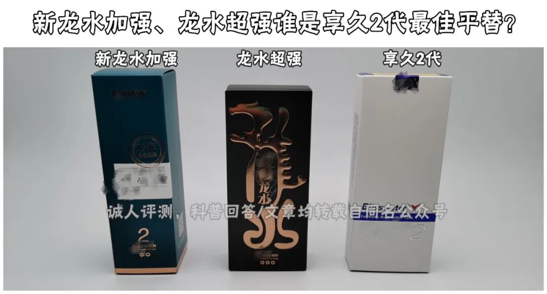 反之,如果用了享久二代出现较强的热辣感、或使用后很容易没有快感、影响影响硬度,那么就不应换龙水超强作为替代品而是应该换热辣感更小、麻木感更小的新龙水加强、或其他更温和,感觉保留更强的产品。新龙水加强虽然延长时间方面弱了一些,但因为热辣感更小、快感保留更好,那么对硬度的影响也会随之变小,使用起来综合体验才会更好。