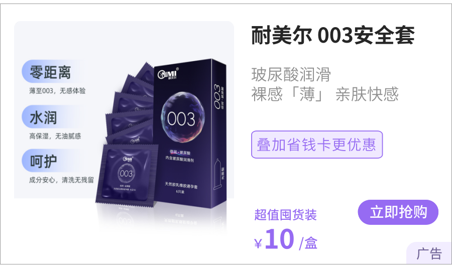 就比如耐美尔003安全套采用泰国天然乳胶,颜色近乎透明,裸感设计,戴上就像为你定制般服帖。