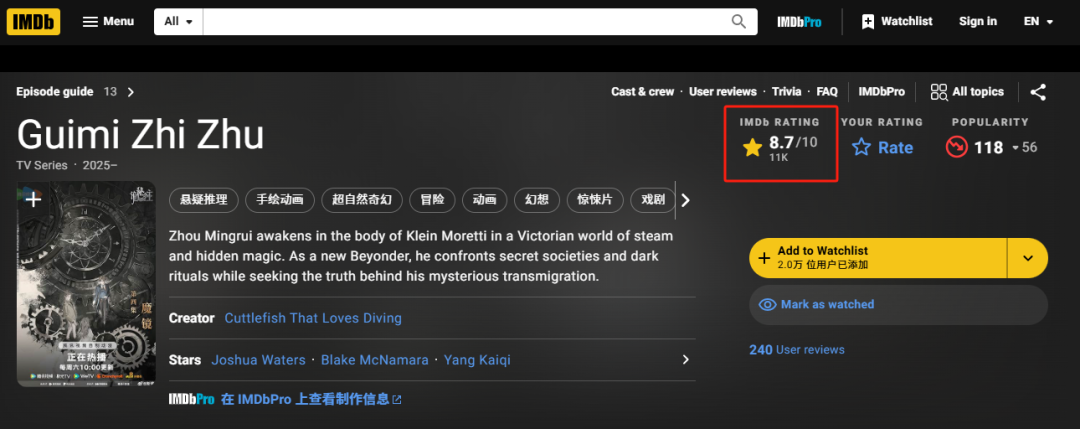 这份共鸣,也反映在了数据上。无论是国内还是国外,后几集的评分一直在水涨船高,社区评价也持续上升。