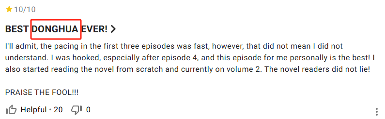 甚至,它的播出,让不少海外动漫爱好者自发地开始用“dong hua”这个拼音词汇来代称中国动画,足以见得它在所获得的成功。