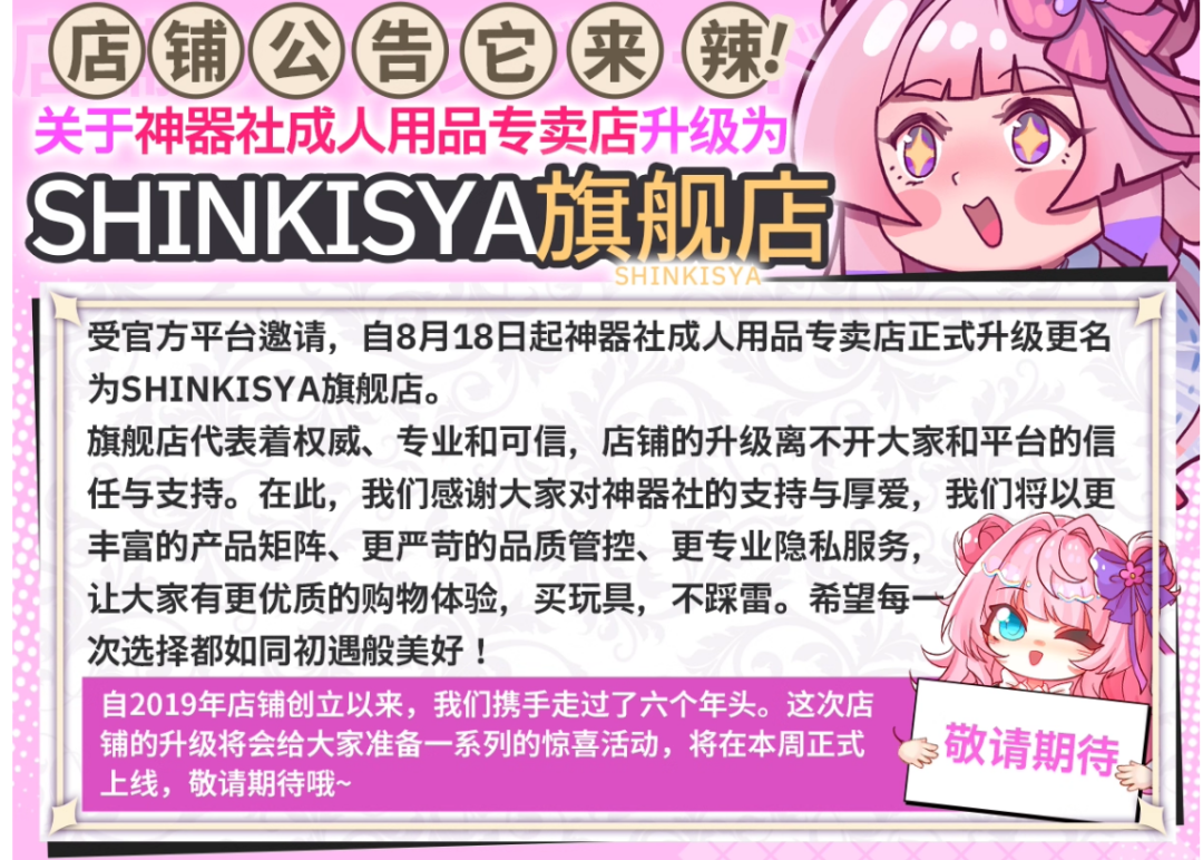 【店铺升级】神器社升格更名shinkisya旗舰店,带来全新低价预售,满额冲榜额外赠杯