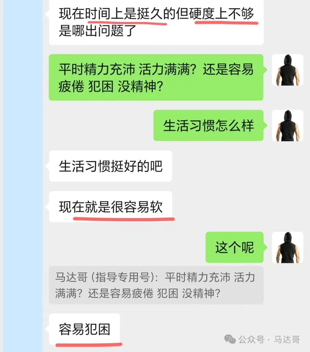 这位兄弟长期运动强度大,身体恢复不过来,会慢性疲劳;同时压力大和情绪不好,会影响精神状态。 长期这样,身体和精神状态会变得不好,也就容易疲劳犯困、没精神……长期这种状态,就会影响到硬度。