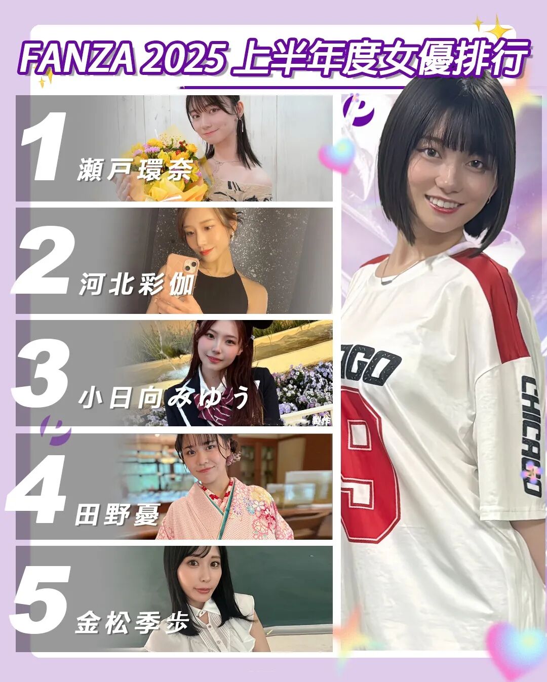 瀬户环奈才发五部作品,就像开了外挂一样,直接把FANZA 2025上半年榜单冠军拿下。