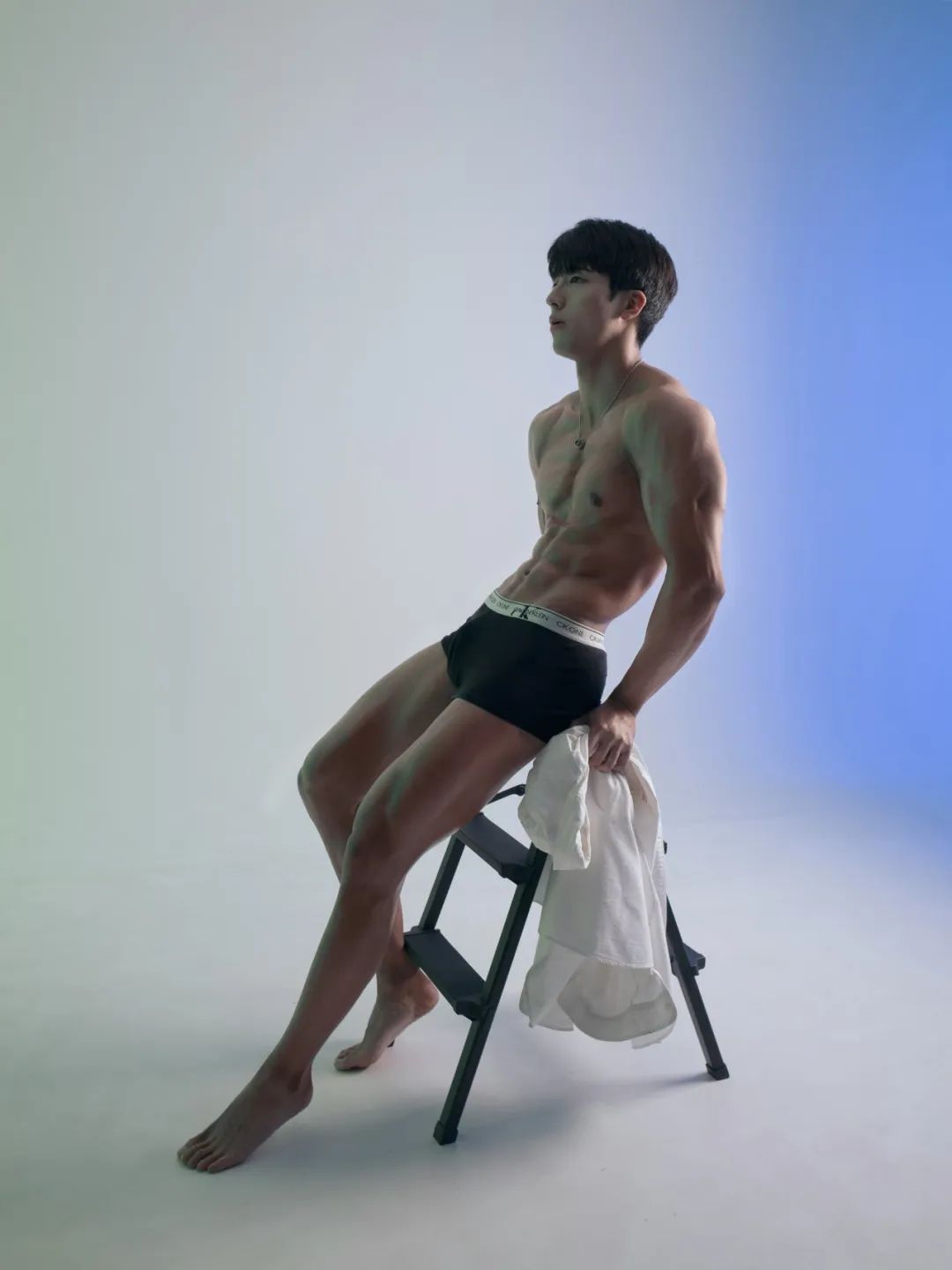你一把按住他汗湿的后背,将他结实的身体重重压进床褥里,露出汗湿的黑色内裤。