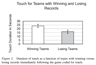 国外的心理学家曾对30支NBA球队进行记录,结果发现,队员们的身体接触越多,那么整支球队获胜而概率也更大。