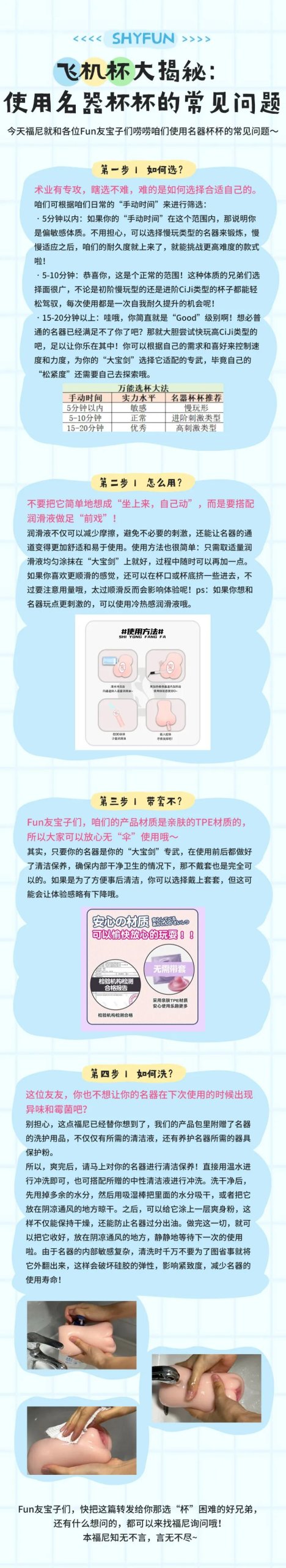 Q&A:飞机杯大揭秘!使用名器杯杯的常见问题 作者: SHYFUN暖趣 声明:本文仅为产品使用指南与人物资讯,不含任何色情内容,不提供任何观看方式,不涉及非法信息。如若本站内容侵犯了原著者的合法权益,可联系我们进行处理。