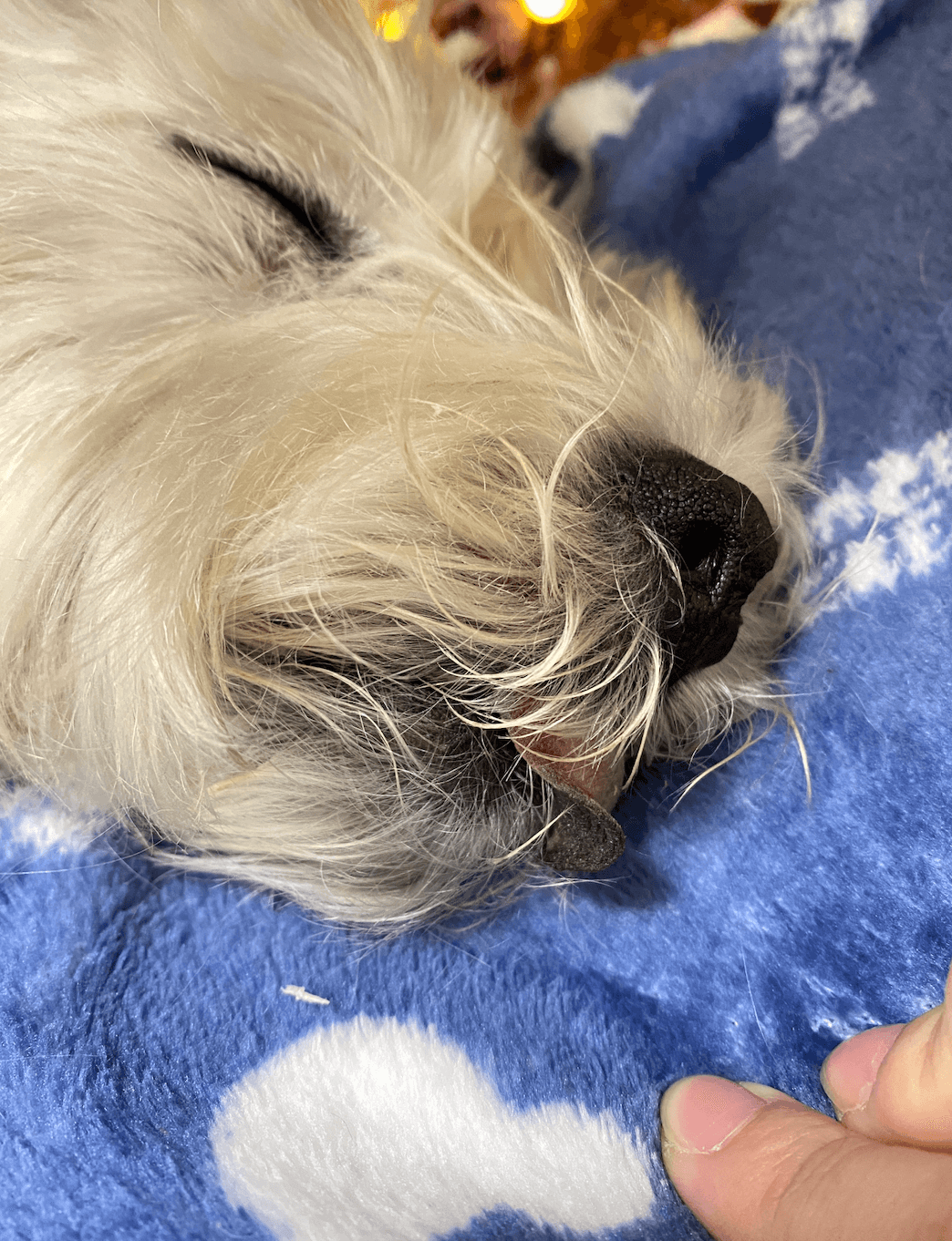 小狗叫Papi,是只步入老年的西高地白梗。他有双圆溜溜的眼睛,到离开时依旧努力睁得很大。如果当时平安走下手术台,几个月后就是它13岁的生日。