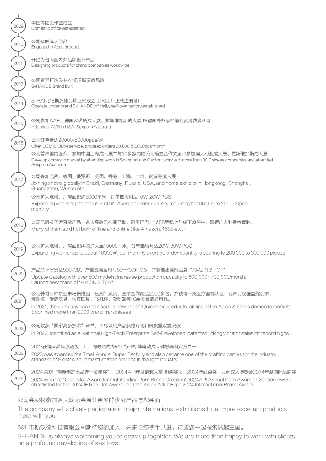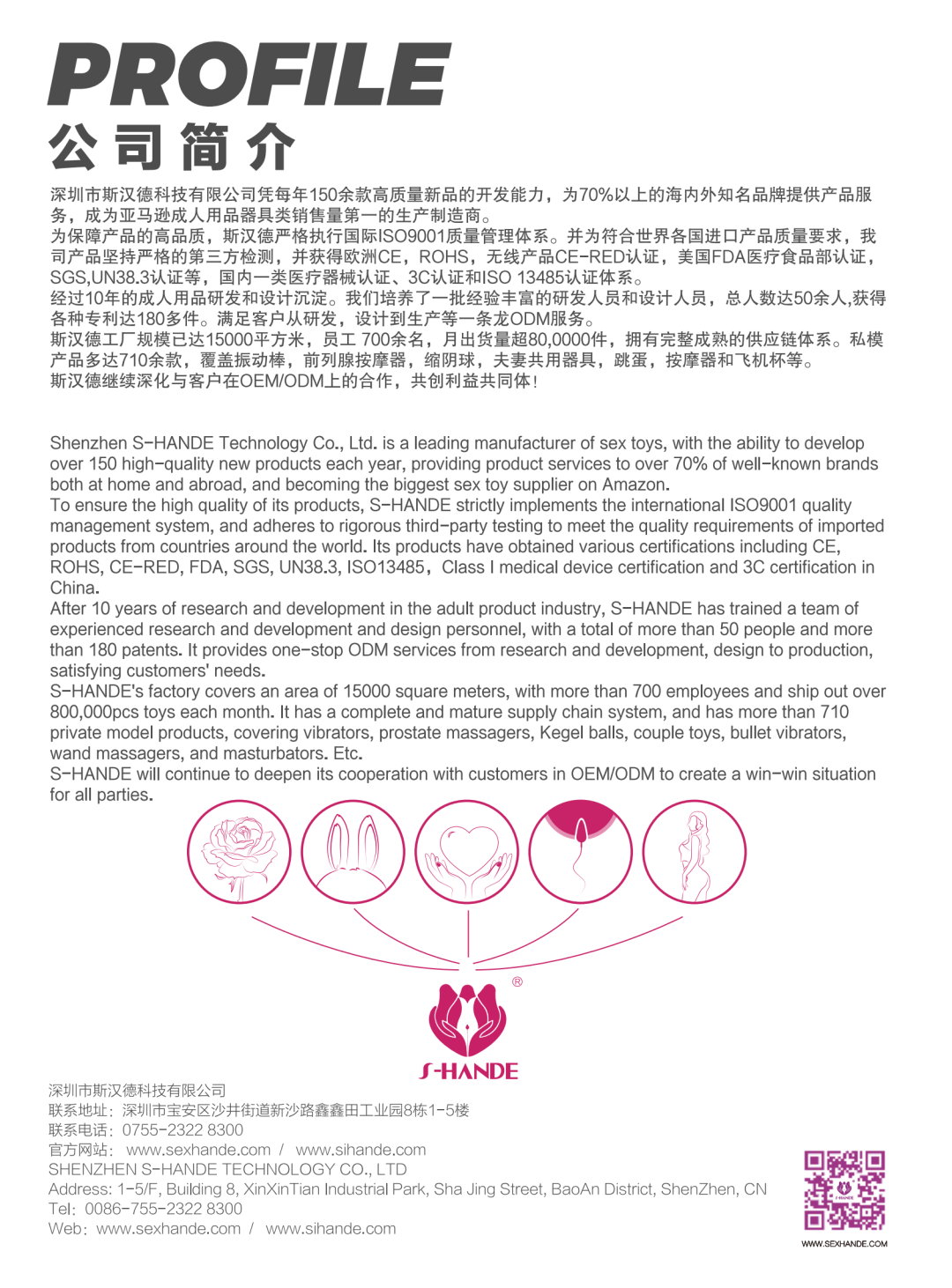 深圳市斯汉德科技有限公司,凭每年150余款高质量新品的开发能力专注为全球高端情趣品牌服务。成为亚马逊成人用品器具类销售量第一的生产制造商、天猫年度超级工厂。