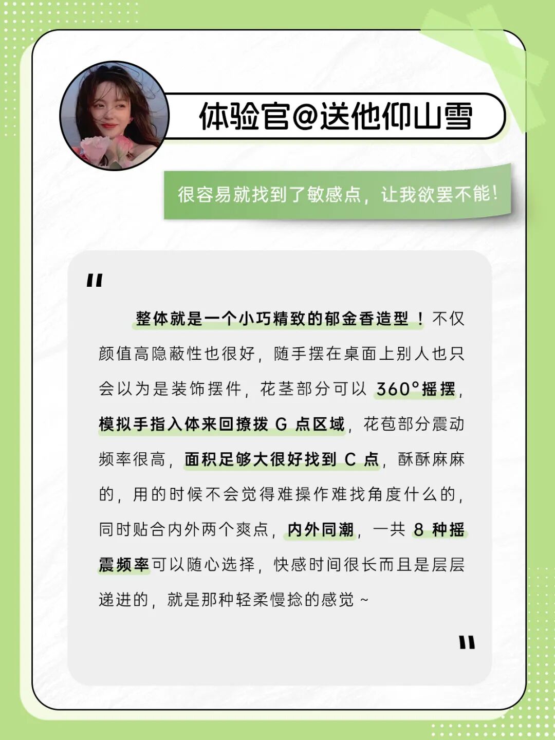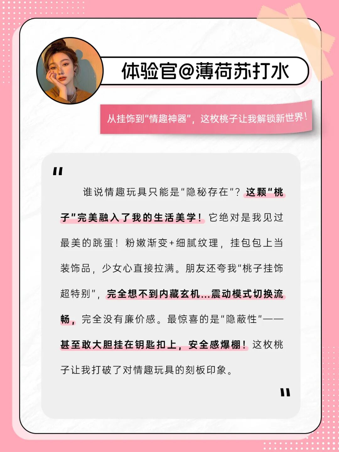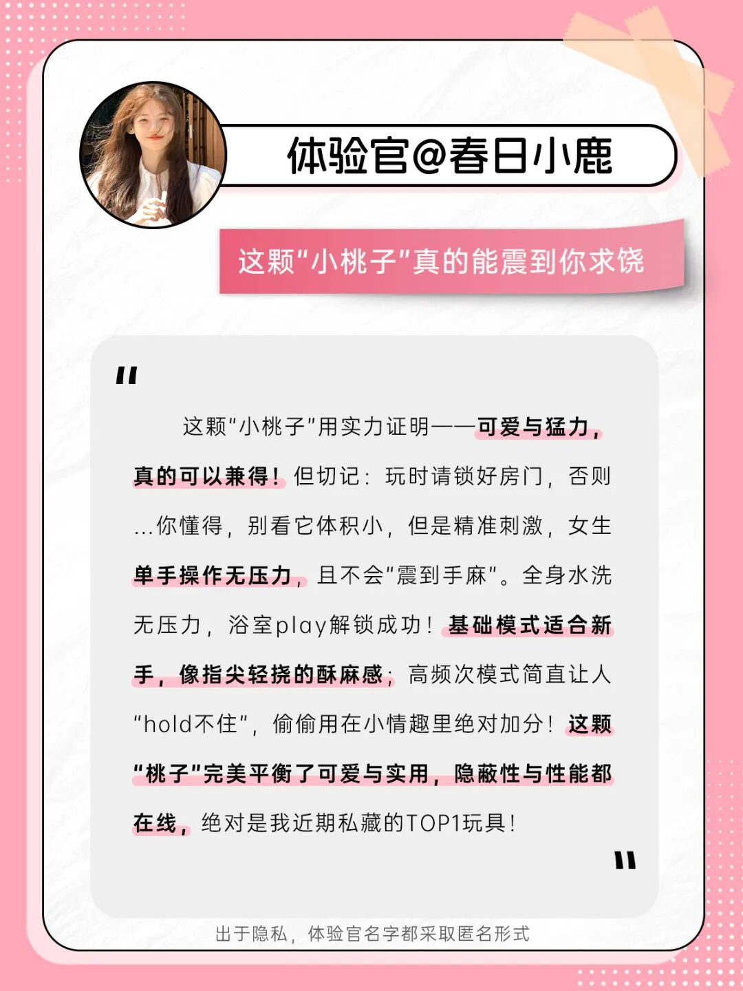 Women产品手册丨悦金香&桃妳欢心测评日记 作者: 杰士邦秘密花园 声明:本文仅为产品使用指南与人物资讯,不含任何色情内容,不提供任何观看方式,不涉及非法信息。如若本站内容侵犯了原著者的合法权益,可联系我们进行处理。