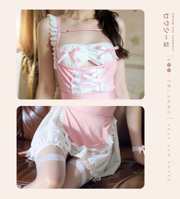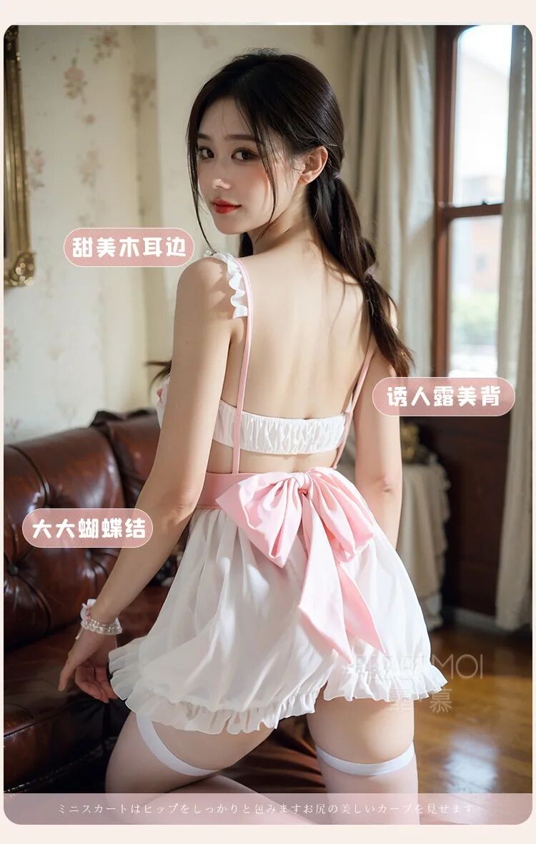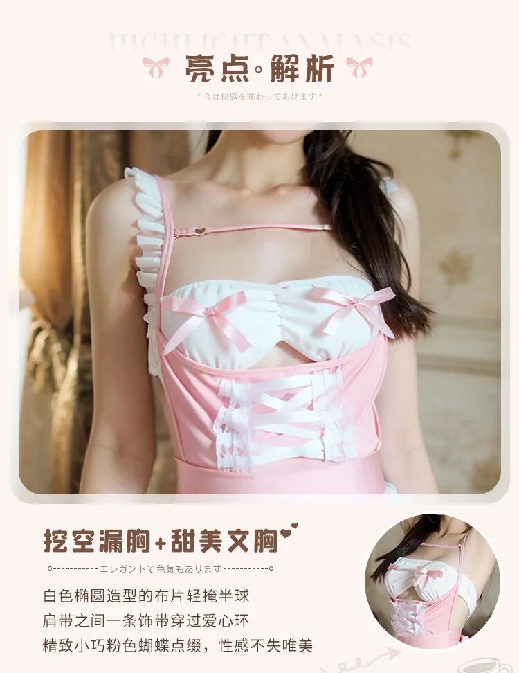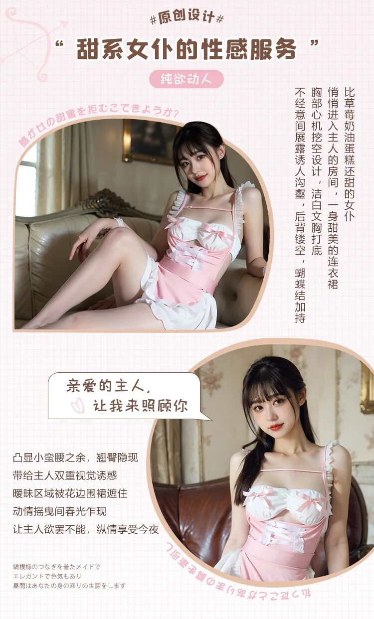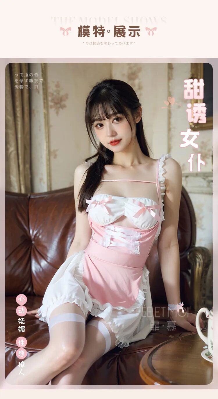 今天推荐给宝子们的是霏慕的粉红小甜心女仆装,粉色+白色的纯欲配色,还有可爱的蝴蝶结,这样甜甜软软的萌妹子,没有男孩子会拒绝,精致的束腰设计,让你轻松凸显小蛮腰,搭配白色的长筒丝袜,在视觉上稳稳拿捏~