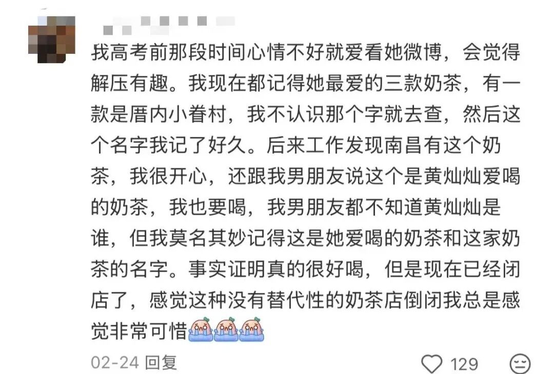 更多的人追逐黄灿灿的生活方式,模仿她的口头禅,在日常小事中试图复制她的随性与自在。有网友至今会用她常用的口头禅发朋友圈,也有人至今仍记得她最爱的奶茶品牌。