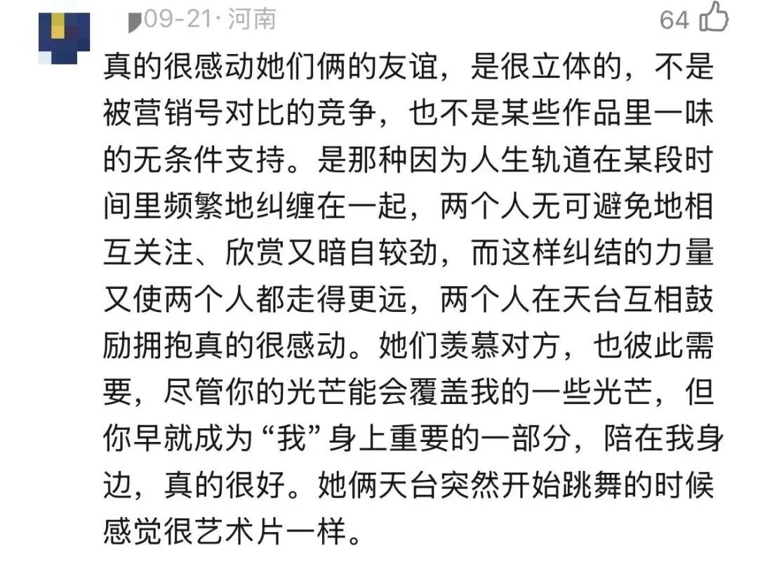 但嘴上说着“可恶”,话里话外都是大方的欣赏,“她唱的比我好一点,跳的也比我好一点。”