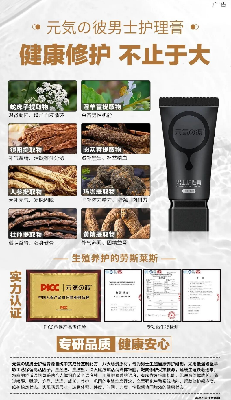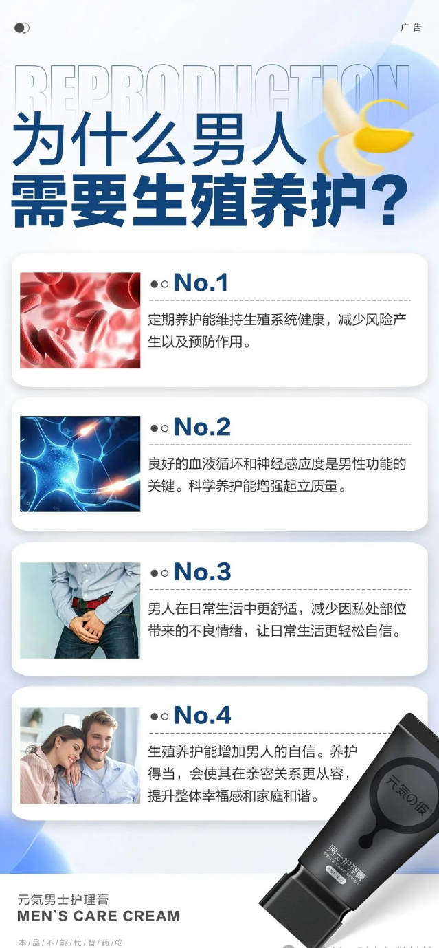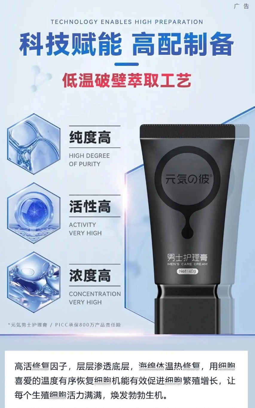 二、元気男士护理膏:针对性解决养护痛点,温和又高效