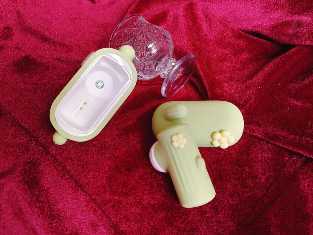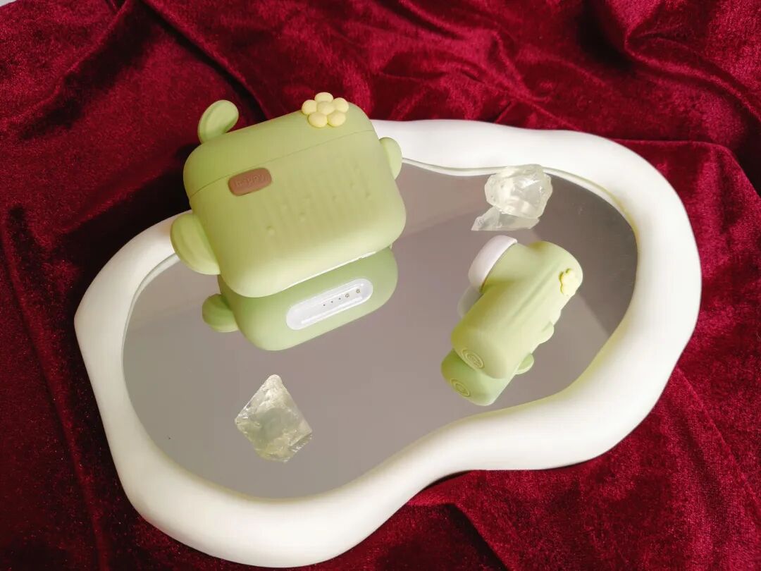 小清新的耳机盒外观嘟嘟吸的外观设计也很贴心,它的充电仓就好像个小耳机盒,浅浅的绿色还给人一种很清新的感觉,而且里面还配置了可以消毒的紫外线,每次玩完清洗后,紫外线杀毒一下,就不用担心卫生问题啦。就算真的被朋友看到,也会以为是你新买的小耳机,根本不用担心被发现。