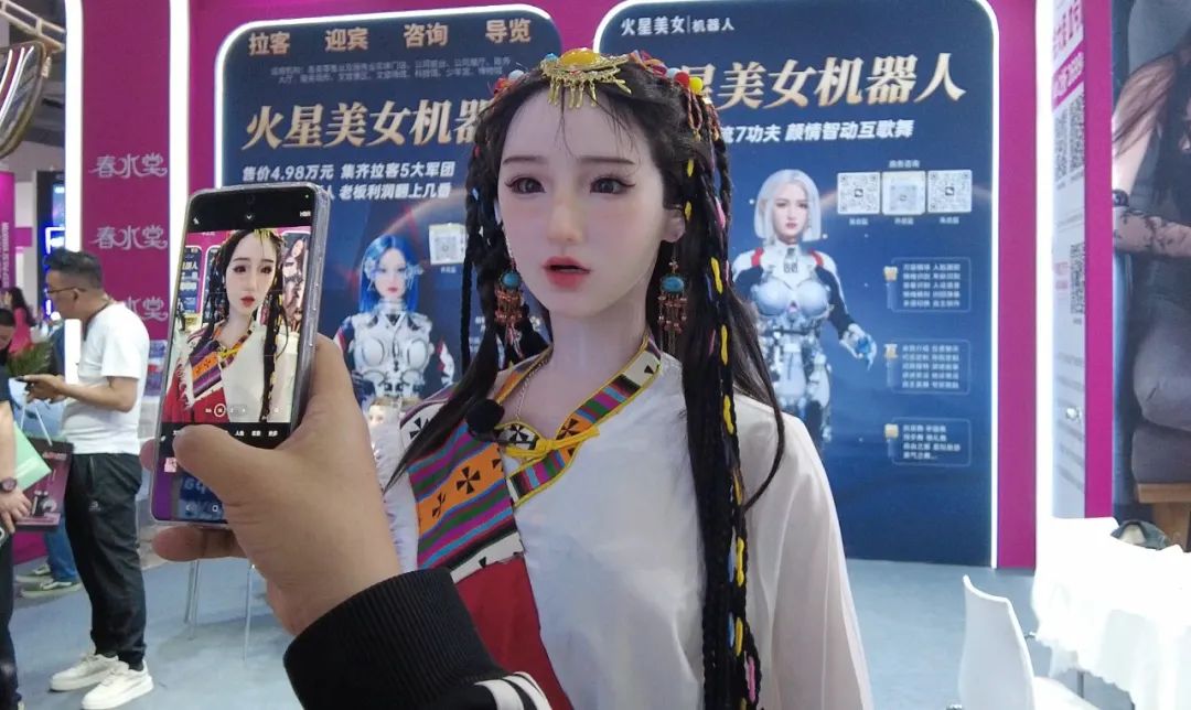 另一头部厂家金三玩美(WMDoll)的展位同样被围得水泄不通,其机器人内置了“Metabox智能盒子”,不仅能根据用户每次的临床表现变化做出互动反馈,还能实现机器人记忆留存和“性格养成”,给用户情绪价值拉满!