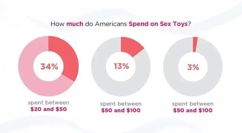 根据大数跨境搜集的一些关于美国成人用品消费者画像的数据和信息,50%的受访者(包括54%的男性和45%的女性)表示他们的性玩具价格低于20美元,仅有3%的受访者表示他们花费了超过100美元。