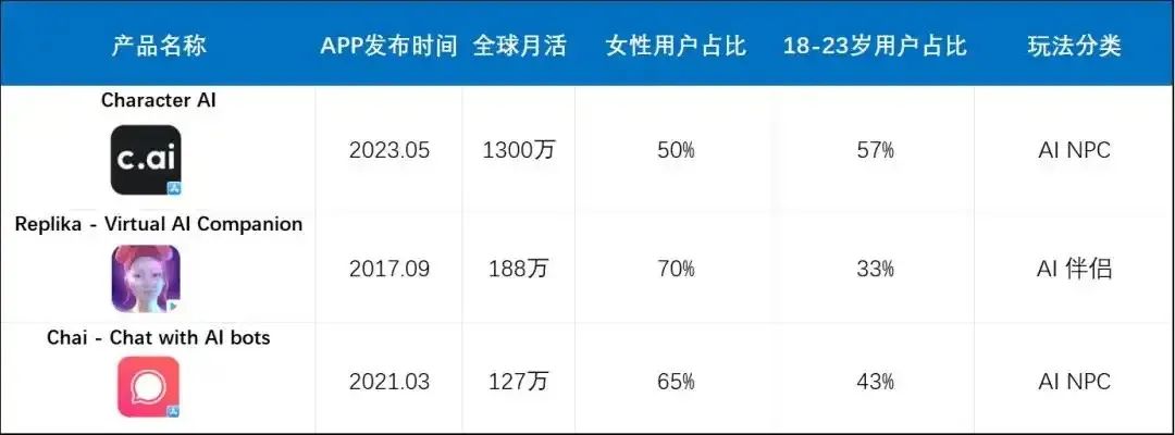 这在AI陪伴的赛道上已经验证。在当前较为活跃的AI 社交App中,女性用户为主导的情况,已经开始在一些产品中出现。如Character AI 、Replika、Chai,女性用户占比都在50%以上,星野的用户群也是女性居多。另外,在AI陪伴玩具市场上,我们可以发现很多产品打造成毛茸茸的、可爱的外形,这既是迎合儿童,也是迎合女性。