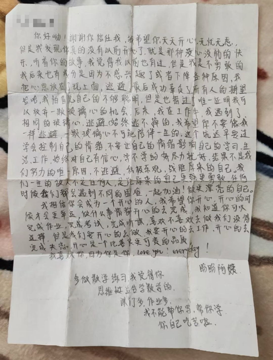 刚上初中的田宁,因为被数学老师无视,而讨厌上数学课。盼盼就给她写了一封信,信上写道: