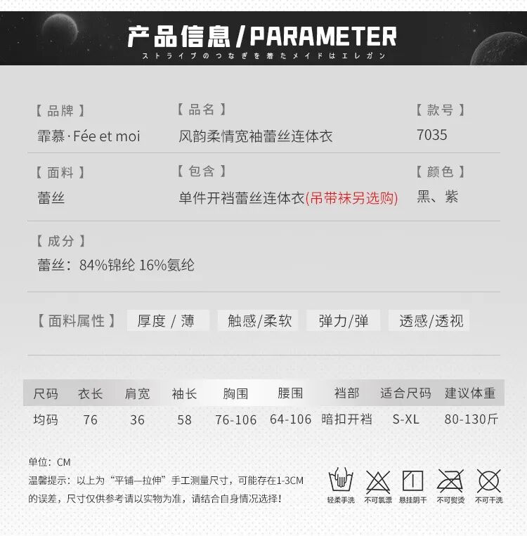 霏慕的这款连体衣,无论是从面料的弹性以及亲肤的柔软性,都考虑的十分周到,透视感也是做足了功课的,将若隐若现拿捏的恰到好处。
