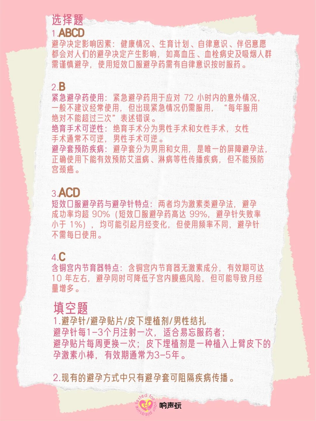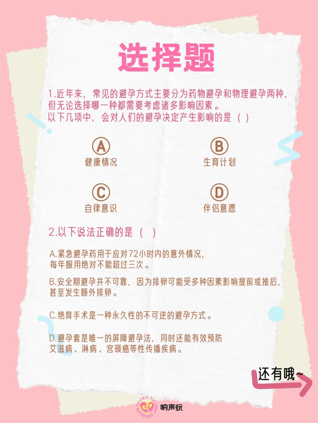 【响声玩|科普分享】避孕知识期中考|现在开始!