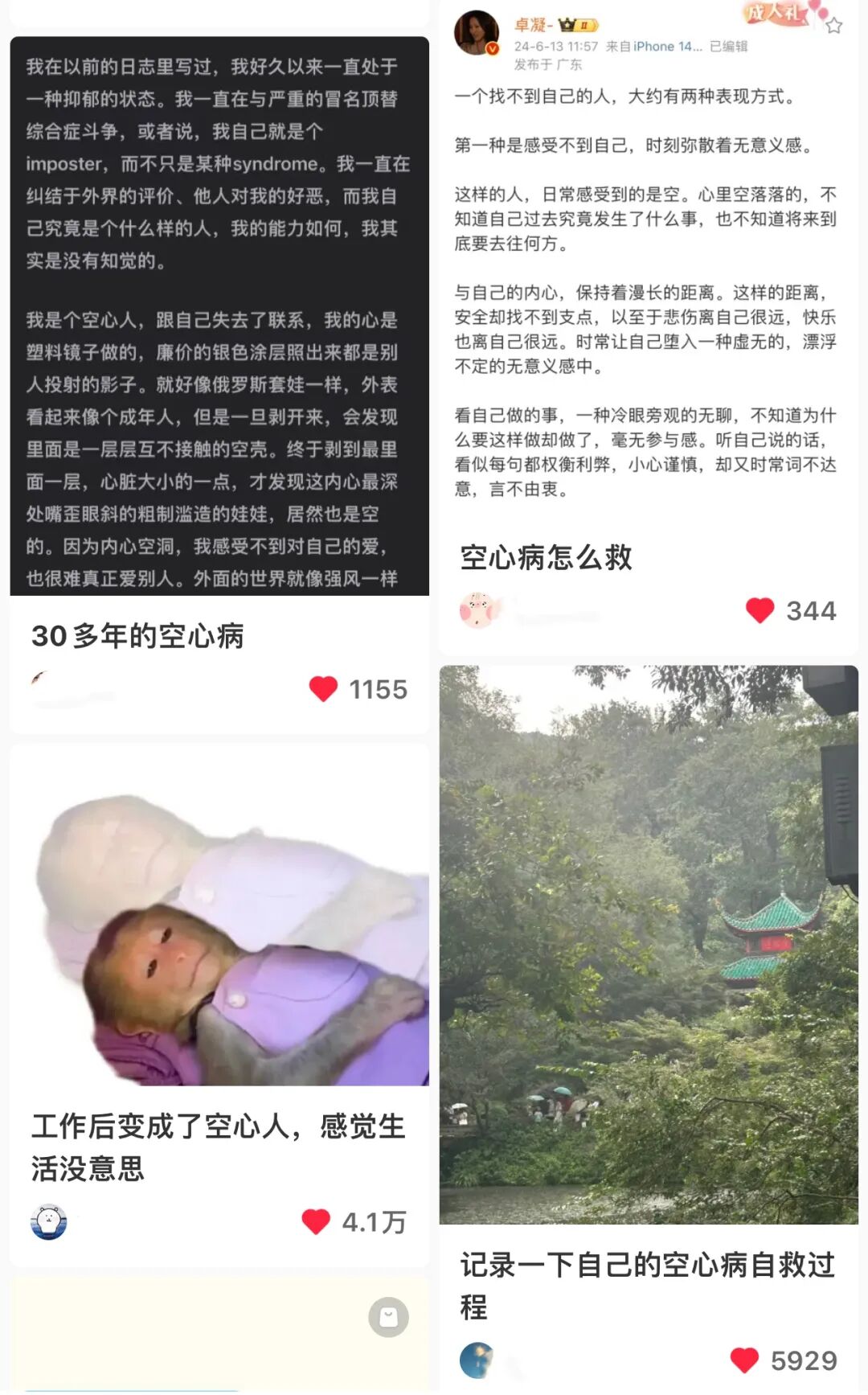 社交平台上,“空心病”这个词正被频繁提起。
