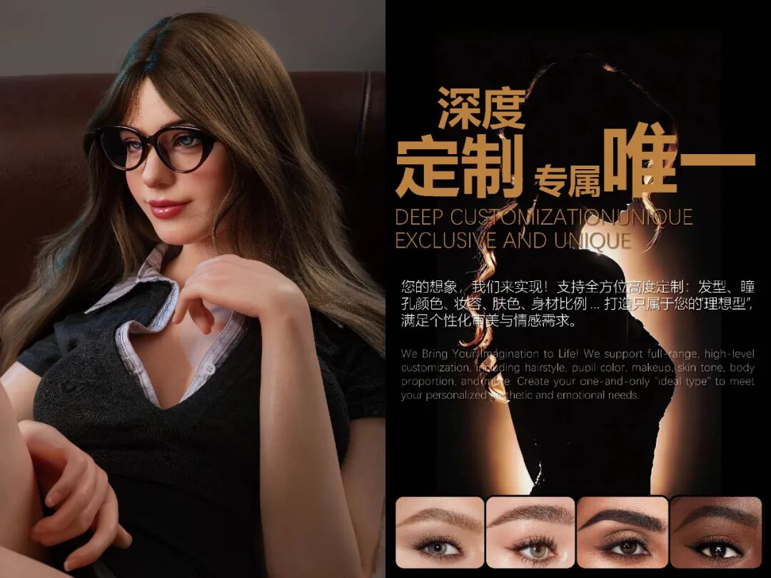 3.深度定制,专属唯一: 您的想象,我们来实现!支持全方位高度定制:发型、瞳孔颜色、妆容、肤色、身材比例… 打造只属于您的“理想型”,满足个性化审美与情感需求。