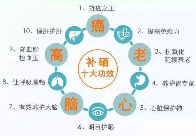 抗癌之王:硒能改善免疫系统功能,防止肿瘤发病、转移,诱导肿瘤分化并抑制癌细胞分裂和增殖。硒还可明显减少化疗药物引起的毒副作用,并提高药物疗效。