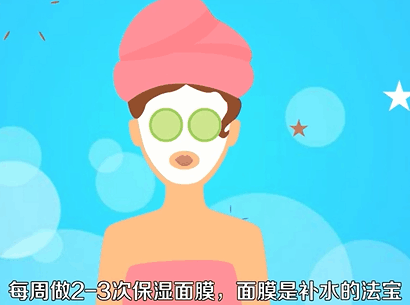 3、每周做2-3次保湿面膜,面膜是补水的法宝,使用喷雾的性质温和,补水效果好。使用面膜给肌肤拍透水份之后,一定记得给皮肤来一层保湿面霜,面霜阻止皮肤水分过度流失,食用富含维生素的蔬菜水果。