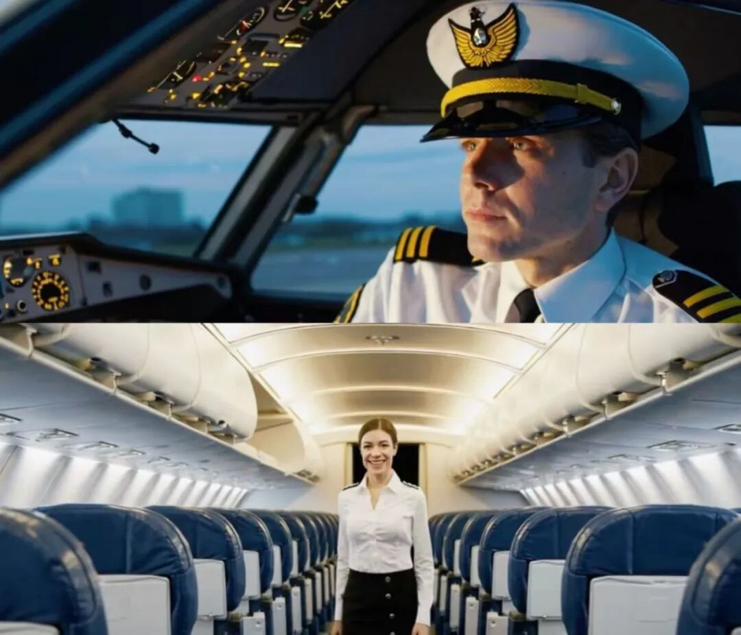 由Sora生成的飞行员(上)和空乘(下)。图源:《Wired》