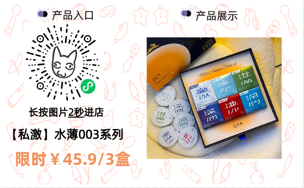 私激的水薄系列003就能为安全sex保驾护航,他家这个系列一共有激、涌、沸、冰、滋、润,各自适合不同情况的人群,大家可以按需选择