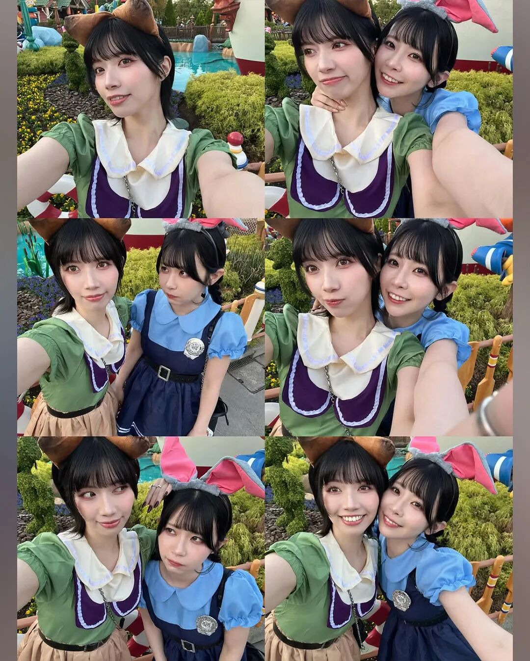 不仅服装神还原,还模仿动画中“可爱合照”动作,