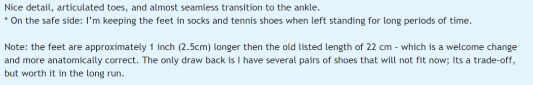 细节很棒,脚趾是可活动的,而且过渡到脚踝处几乎是无缝衔接。