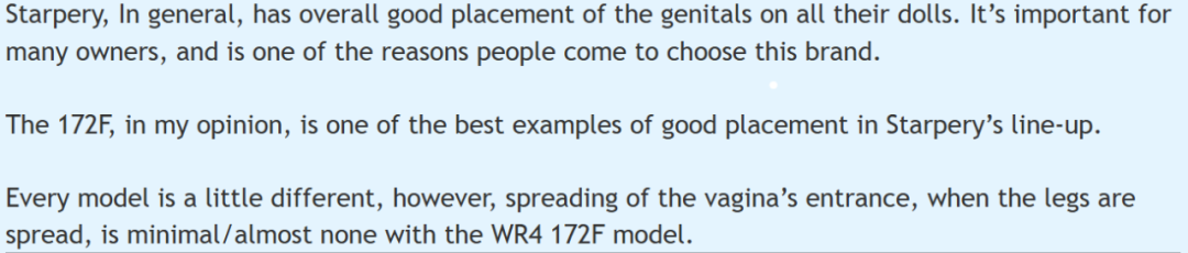 在我看来,172cm F罩杯这款娃娃是 Starpery 产品线中下体位置做得当的最佳范例之一。