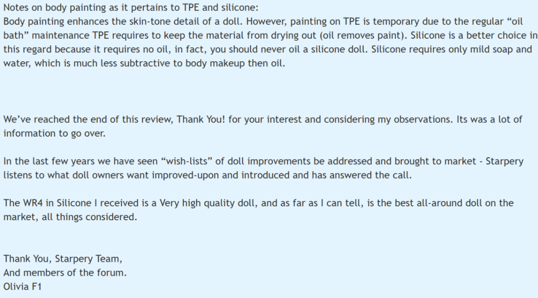 另外值得一提的是,相较于 TPE 娃娃,它所需的润滑剂更少,我认为这是因为 TPE 具有多孔性的缘故。
