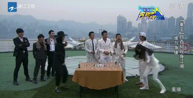 在《奔跑吧兄弟》最火的时期,白百何作为飞行嘉宾现身,与杨颖玩泼水游戏。