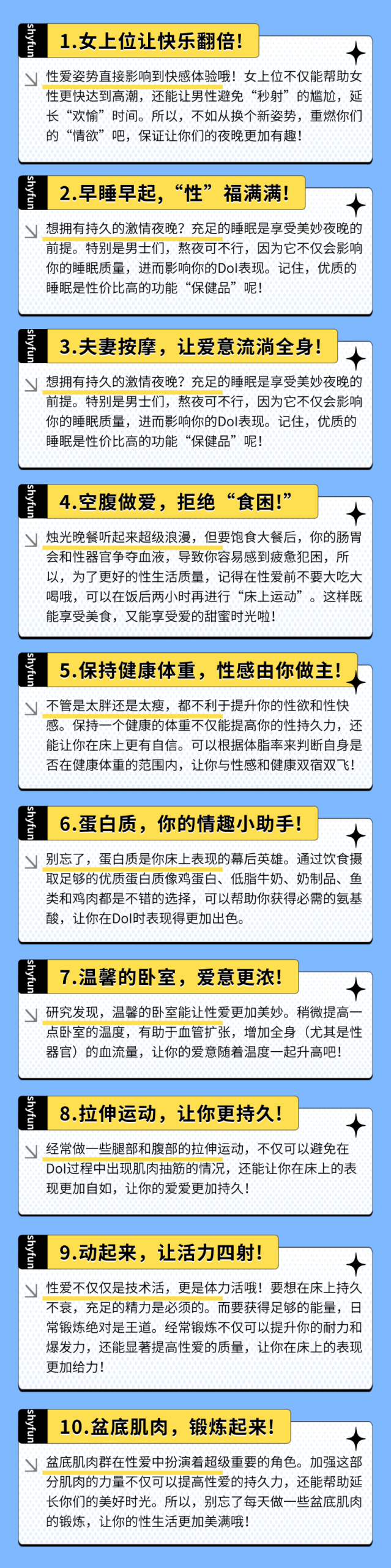 福尼の成人课堂:20条小知识让你们情侣生活更甜蜜~(上) 作者: SHYFUN暖趣 声明:本文仅为产品使用指南与人物资讯,不含任何色情内容,不提供任何观看方式,不涉及非法信息。如若本站内容侵犯了原著者的合法权益,可联系我们进行处理。