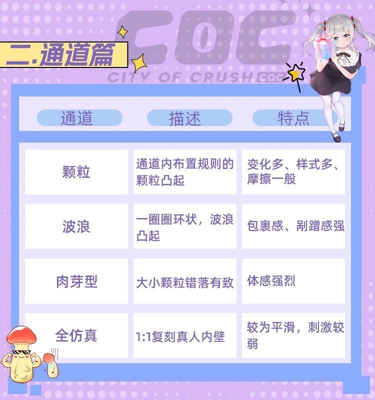 通道是飞机杯的“灵魂”,是决定着“愉悦与否”的关键因素。一般来讲,通道并不只有一种通道类型,颗粒大小、螺纹样式、通道深浅都有所差异。