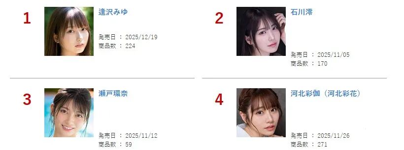 结果就是如此意外的,10月份榜单被石川澪和逢泽美优给拉下来了。