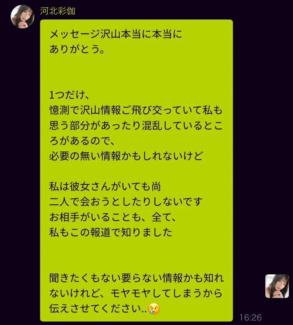 当然这份“解释”也没有说清楚她跟高桥蓝之间的关系,否认了自己有交往对象,但没有否认和那134张照片的真实性。